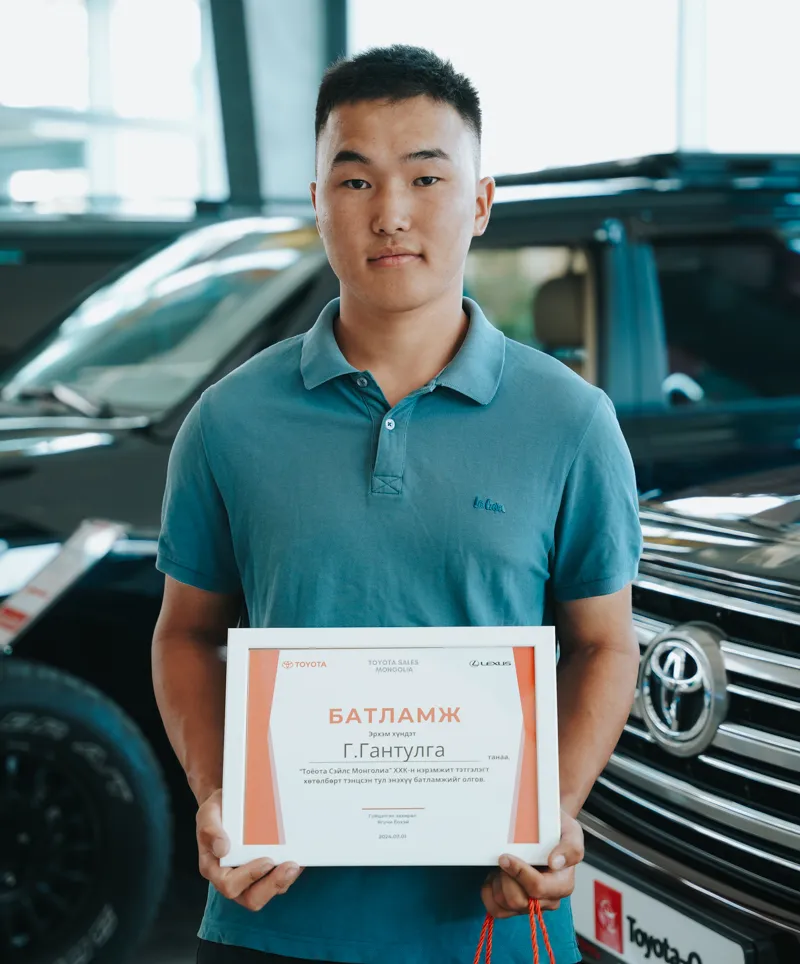 - Албан ёсны Тоёотагийн дилерүүдэд мэргэжлээрээ дадлага хийх